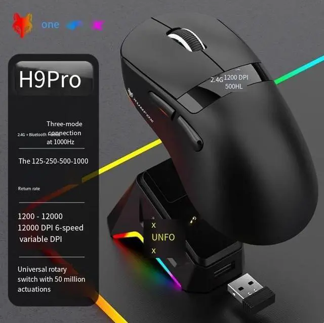 Shuan yin Huo H9PRO Wireless Bluetooth Computer Mouse - Gaming, Ofice, Three Modes, Wired PAW3311 Notebook CF