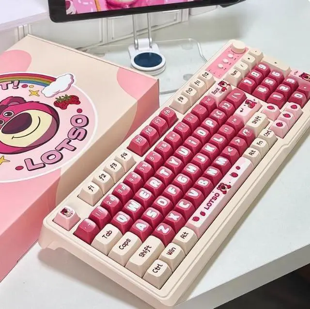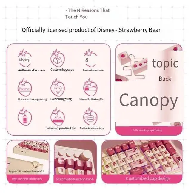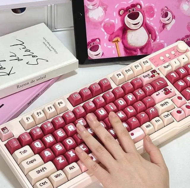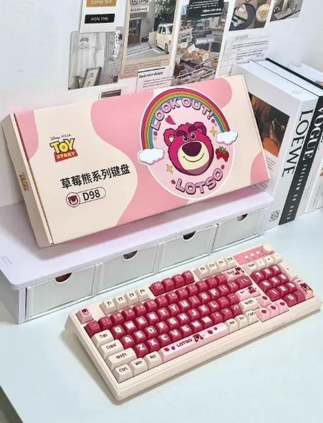 Strawberry Bear Wireless Keyboard and Mouse Set98 -Suitable for Girls with Hizh Appearance Standards, Bluetooth, silent, Desktop. 0fice UseOnly