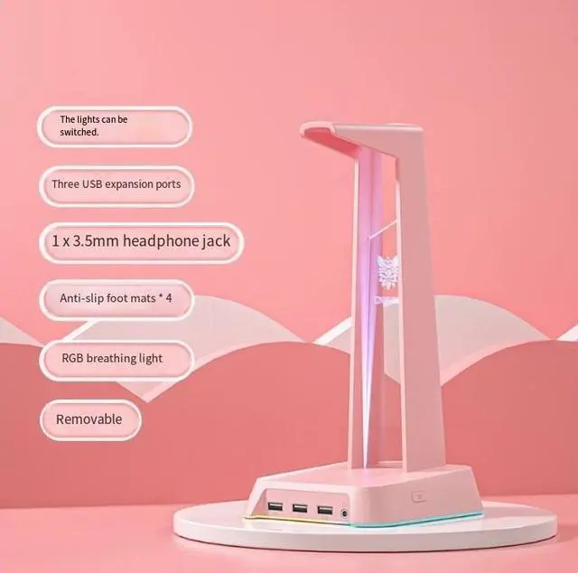 Colorful earphone stand. When not in use, place theearphones on the top ofthe stand or display the colorful lightsofthe earphones and the base.