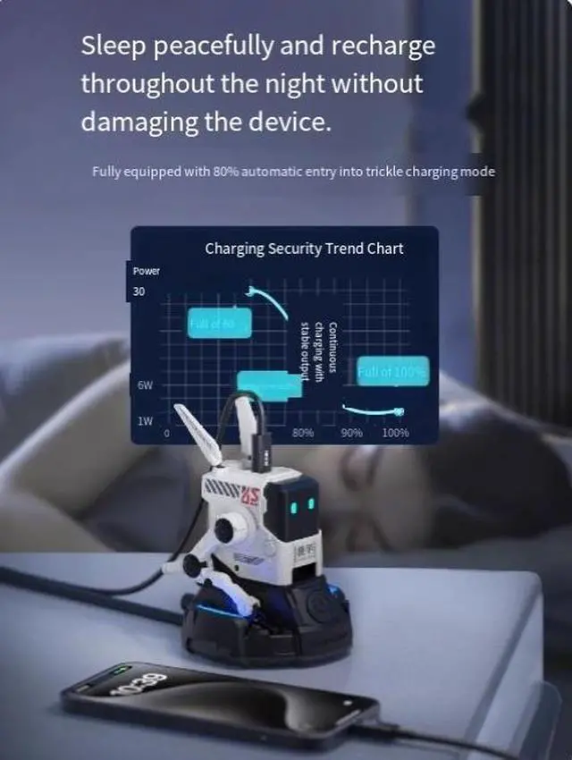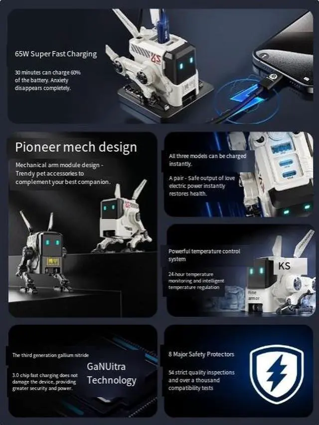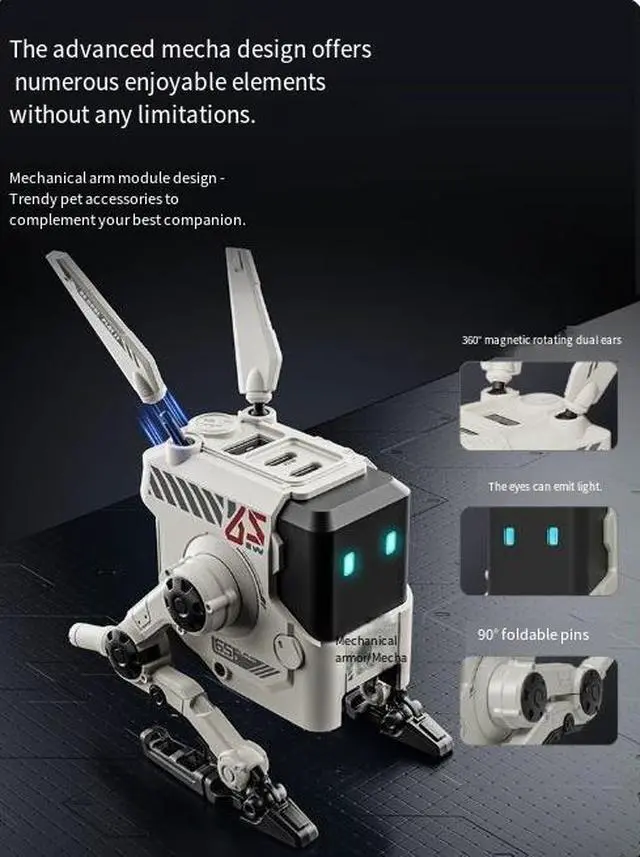 The advanced mecha designoffers numerous enjoyableelements without any limitations, Unique mech module design, the appearance of the mechdog is a new species with instant charging. Why shouldyour charger be just a charger?