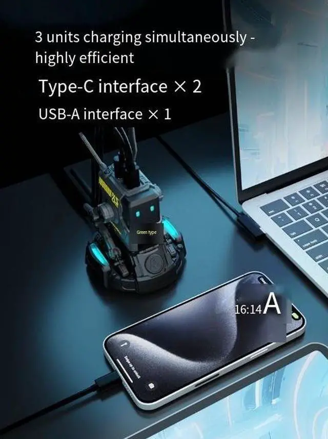 Gravity Planet Knight Black Dog Nitrogen 65w Mobile Phone charger GalliumNitride (GaN) Fast charging Plug Three-Port Dual Type-c charging Head Desktop charging StationMechanical D