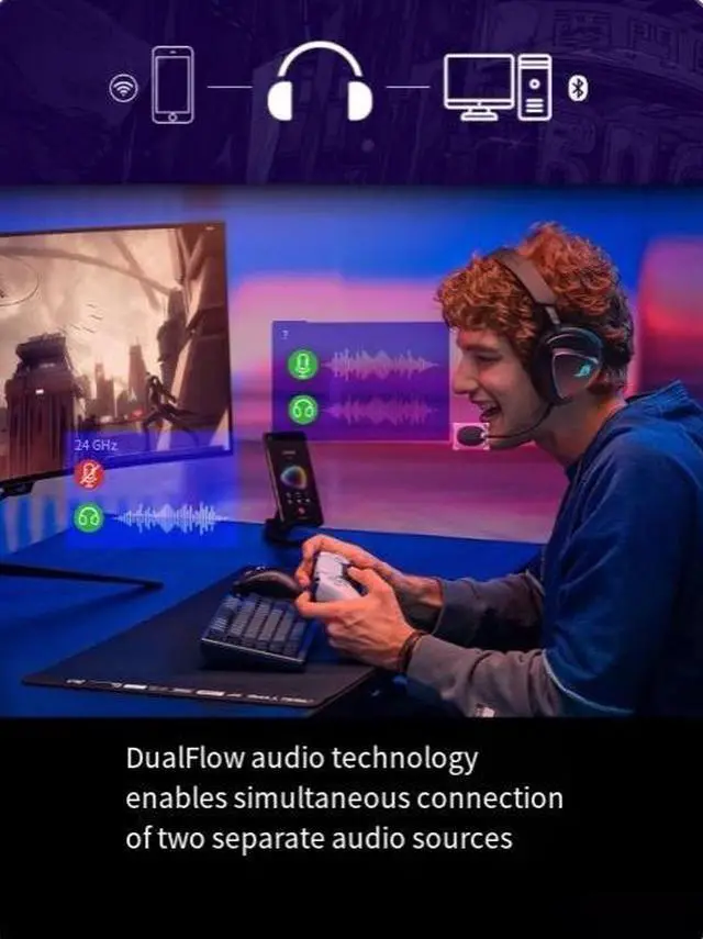 The ROG Prism 2 features specially tuned audio quality [1], which highly replicates the original sound. It supports 24-bit 96k Hz high-resolution audio and employs Lc3+ decoding technology [2]. The bass ispowerful while the treble is crisp, and the sound range is wide