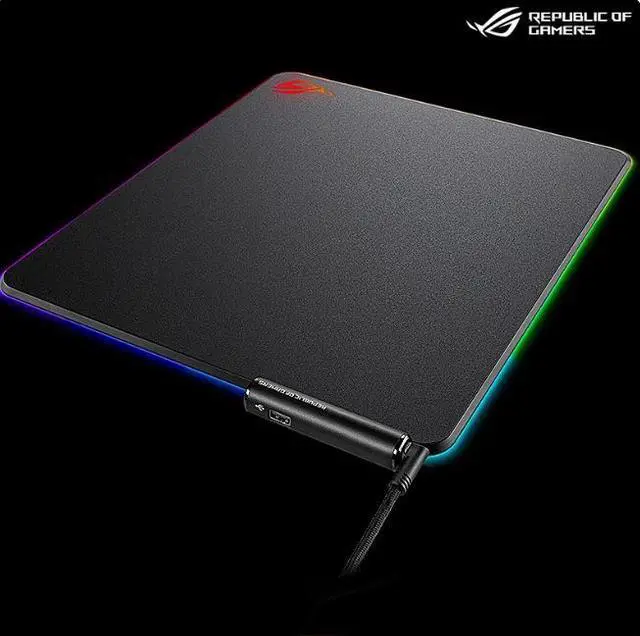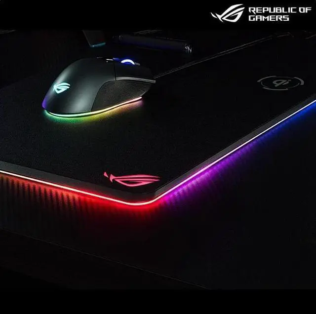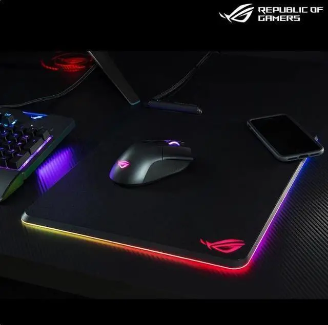 The ROG Balteus Qi wireless charging gaming mat offersconvenient Qi wireless charging functionality. The large, upright surface provides ample space for you to play gamescomfortably and charge compatible devices. lts fine-texturedsurface treatment has been optimized to provide fast trackingIt is equipped with 15 independent customizable Aura SyncRGB light effect zones, allowing you to play games in your ownway and style
