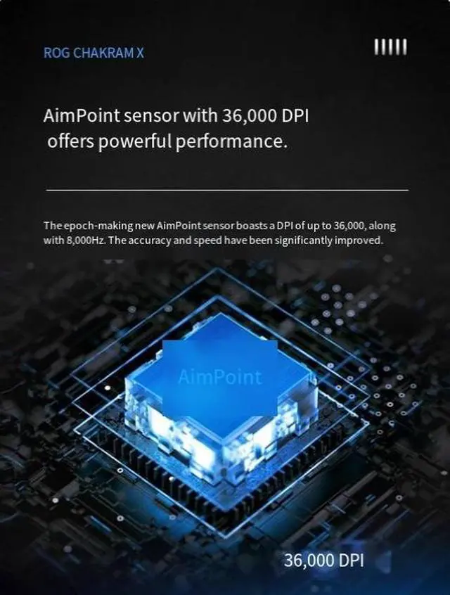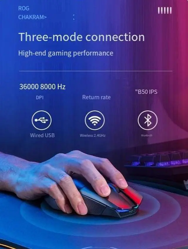 Product Features Product Features Three-mode wireless e-sports mouse Pleasant PowerLong-LastingBattery Life ROG CHAKRAM X Magic Blade XCompetitive Edition AimPoint Sensor Separate game joystick