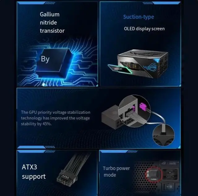The ROG Thunderstruck 3rd generation 1600W titanium power supply is equipped with ASUS's unique graphics card voltagestabilization technology. By connecting to the purple 2-Pin interface on the power supply, it can achieve a voltage stabilizationeffect that is 45% fasterthan that of ordinary powersupplies.