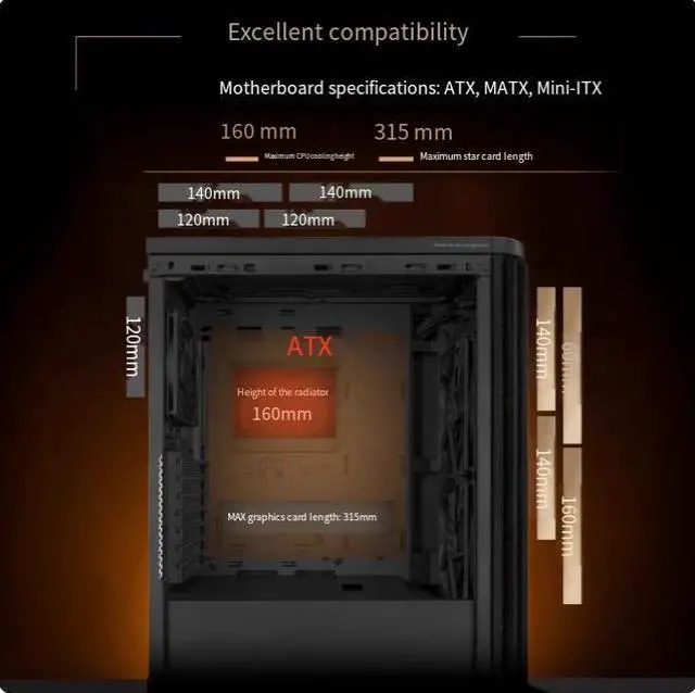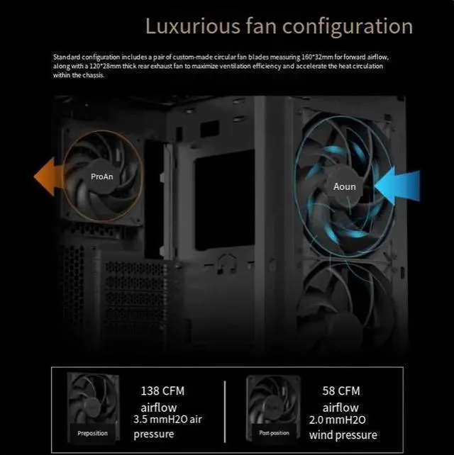 airflow, along with a 120*28mm thick rear exhaust fan to maximize ventilation efficiency and accelerate the heat