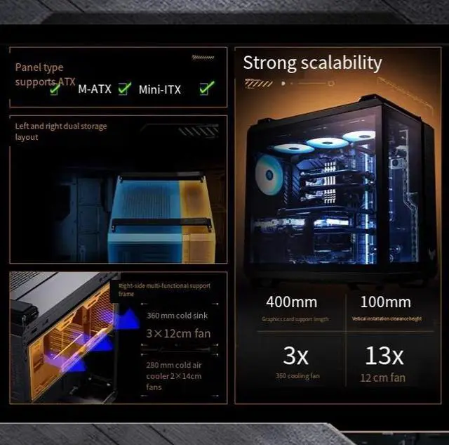 card, and CPU cooling system; on the right side, the cooling box houses the