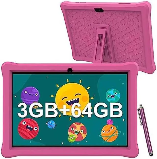 HOTTABLET 10 inch Tablet for Kids 3GB RAM 64GB ROM Kids Tablet, Android 12 Tablet with Case, Toddler Tablet PC WiFi, Parental Control, Dual Camera, Educational Tablets with Silicone Case (Pink)