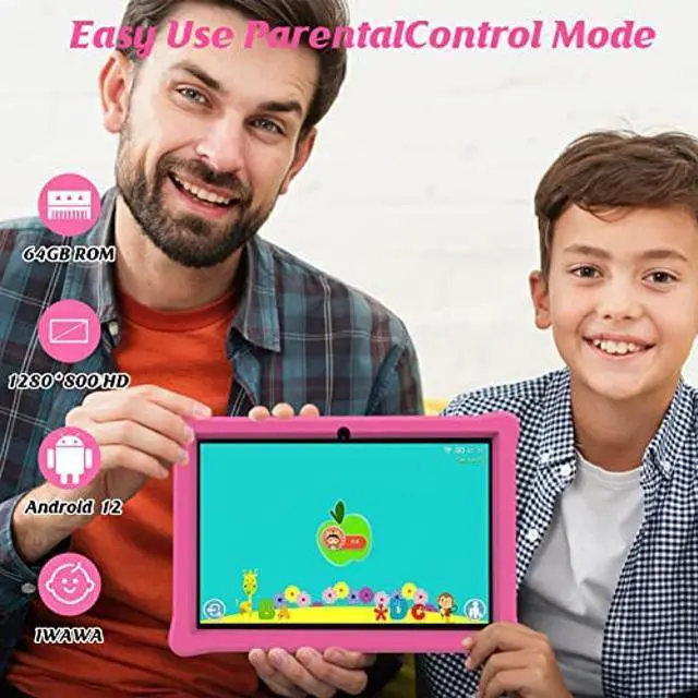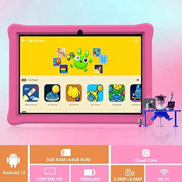 [(Performance Tablet for kids)] This Tablet with 3GB RAM, 64GB ROM, Support 512GB Expand. Adopt Latest Android 12 system, not go edition. with a high-performance CPU. More stable and smooth when operating tablets, quick for multi task and load the webpage. Dual Camera: Front 2.0MP and back 8.0MP Camera, Dual Speaker, Wifi, Bluetooth, 3.5mm Headphone Jack etc. In addition, Tablet computer has passed Google certification, you can download various applications. Such as WhatsApp, G-mail, Skype, Netflix, Twitter, YouTube, Tiktok etc.