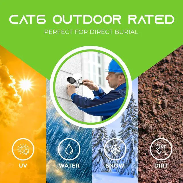 GearIT Outdoor Cat6 Patch Cables.Thanks to its rugged PVC jacket, this cable is perfect for direct burial in the ground. It withstands low and high temperatures, dust, and dirt.