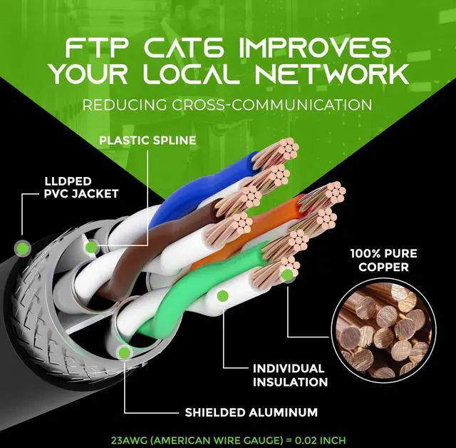 Premium Features. High-quality pure copper shielded Cat6 cable, resistant and flexible, has several insulating layers that im