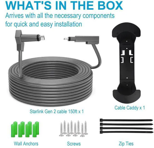Upgrade your Starlink internet experience with this essential 150ft/46m Waterproof Gray Cable Extension Kit. Designed specifically for the Starlink Rectangular Satellite V2, this durable and weatherproof cable allows you to extend your internet connection to reach even the most remote areas. The kit includes a convenient Cable Caddy for easy cable management, ensuring a neat and organized setup. With its extended length, you can position your Starlink dish for optimal signal reception without being limited by distance constraints. Enhance your internet connectivity with this reliable and high-quality Starlink V2 Cable Extension Kit.