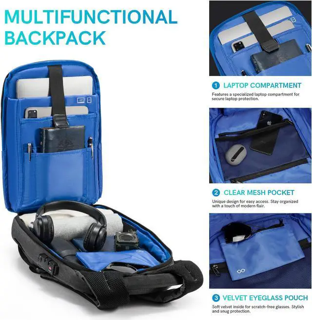 TRIPLE ANTI-THEFT SECURITY - The TSA lock and dual YKK zipper of the main compartment is hidden on the back of the travel backpack(hidden combination lock) Easy access back zipper pocket can protect your wallet, phone, passport and other valuable items. So you can keep peace of mind and relax wherever you go.