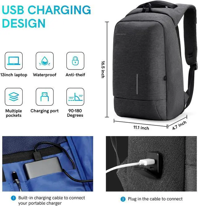 Kingsons Laptop Backpack, Slim Business Travel Computer Bag with USB Charging Port Anti-Theft Water Resistant for 13.1 Inch Laptop Rucksack for men