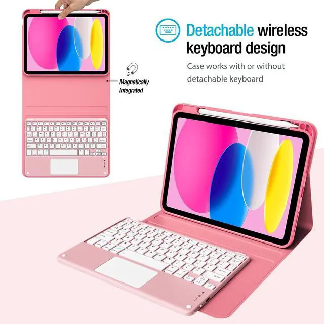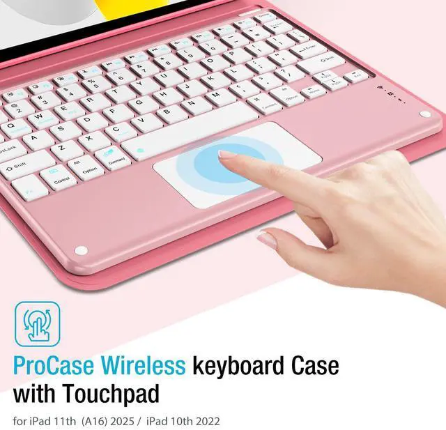 ProCase for iPad 11th (A16) / 10th Generation Case with Keyboard; Detachable Wireless Keyboard Folio Cover with Multi-Touch Trackpad for iPad 11th 2025 /10th Gen 2022 -Pink