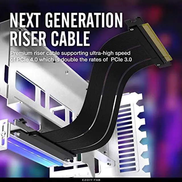 EZDIY-FAB Vertical PCIe 4.0 GPU Mount Bracket Graphic Card Holder with 5V 3 Pin ARGB LED Module, Video Card VGA Support Kit with PCIe 4.0 X16 Gen4 17cm/ 6.69 in Riser Cable 90 Degree Right Angle- White