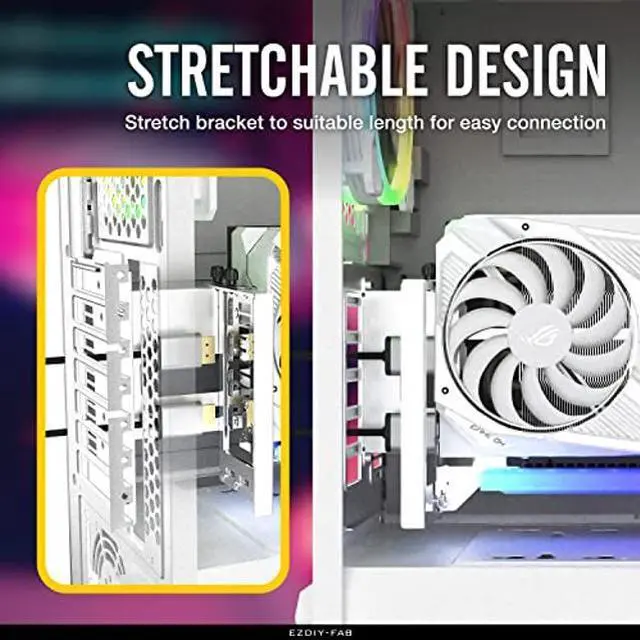 Thanks to Stretchable Structure design, you would be able to connect HDMI, DP cable to your GPU without hassle, compatible to PC chassis with PCI grilles.