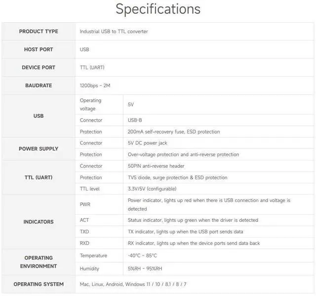 Onboard TTL serial port 3.3V and 5V voltage level switch, allows selecting TTL level