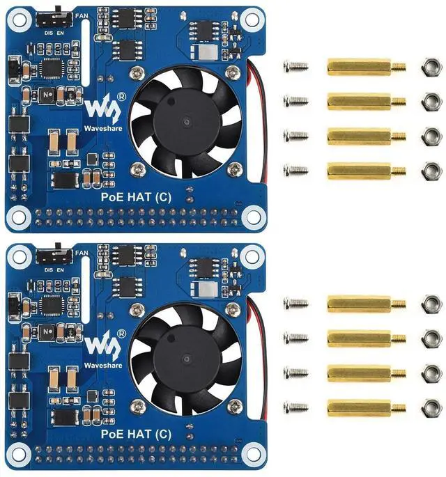Waveshare 2PCS POE HAT Type C, Compatible with Raspberry Pi 3B+/4B, 802.3af/at Power-Sourcing Equipment Required, 12V and 5V Power Outputs to Support More Peripherals-2PCS Version