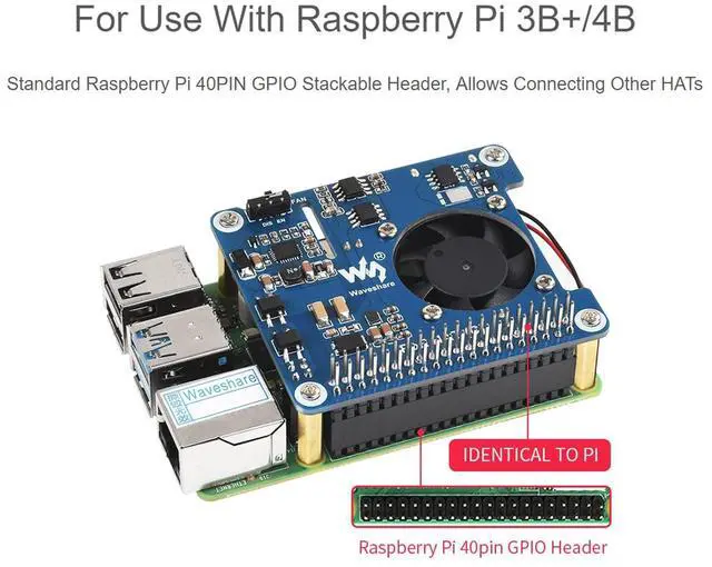 Standard Raspberry Pi 40PIN GPIO header, supports Raspberry Pi 3B+/4B