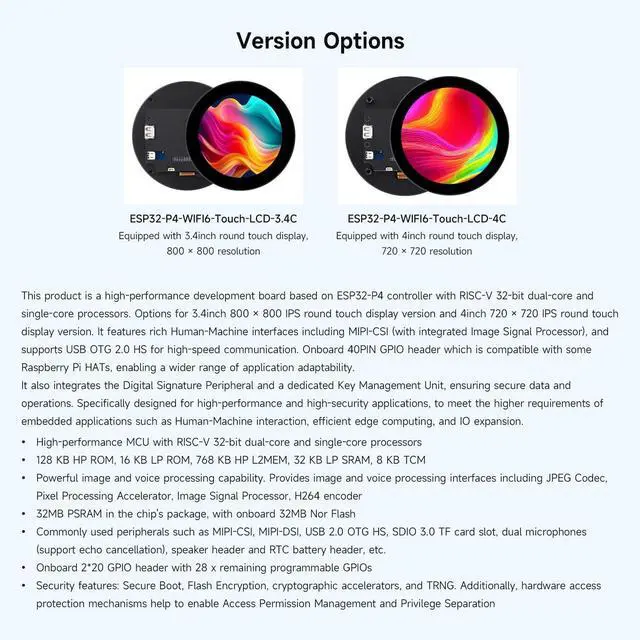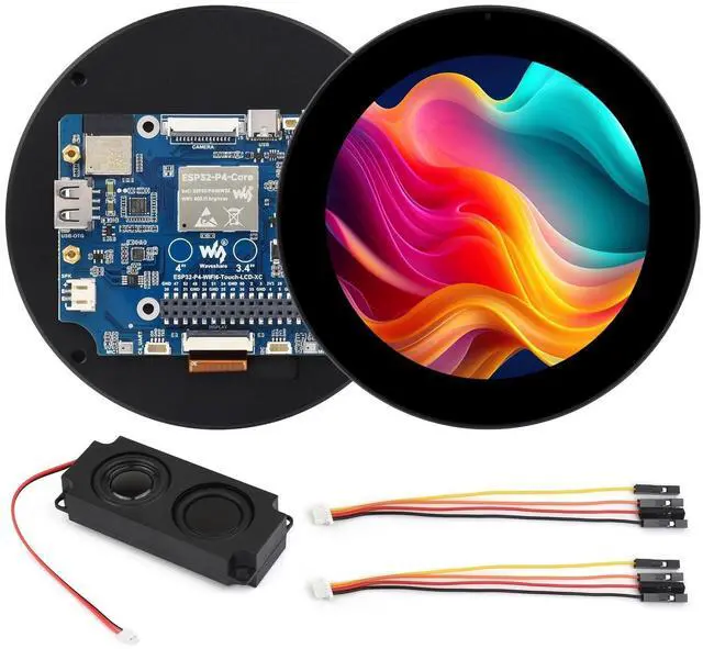 Waveshare ESP32-P4 3.4 inch WIFI6 Round Touch Display Development Board, 800 800, 170 Viewing Angle, Optical Bonding Toughened Glass Panel, Onboard Dual Microphones, Support Wi-Fi 6 / Bluetooth 5 (LE)