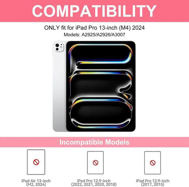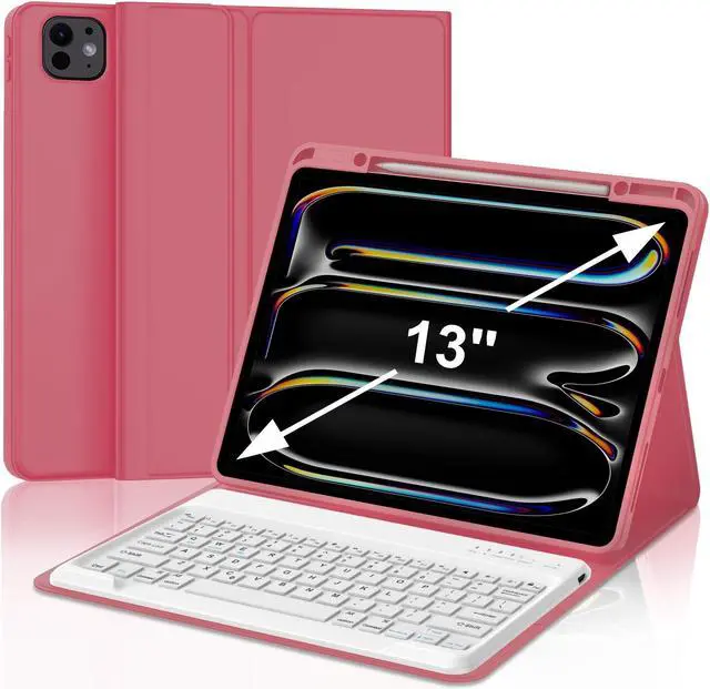 Full Protection - The high quality for iPad Pro 13 inch case 2024 is made of premium synthetic leather and soft anti-slip lining, a protective keyboard cover gives your Pad 360° protection from accidental scratches.