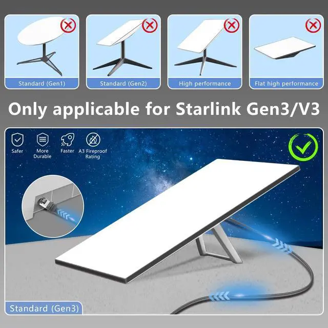 Compatibility:Our starlink internet cable is tailor-made for Starlink Gen 3, optimizing connectivity. This cable is specially crafted for starlink accessories, and its stylish gray waterproof design ensures durability and is suitable for indoor/outdoor installations.