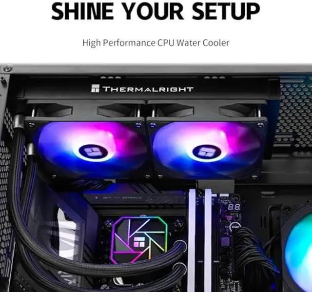[(Better Cooling)] The cooler adopts the fourth generation pump head + 240 cold row size black aluminium fin heat sink plate + protective preparation mesh water pipe + standard configuration 120mm ARGB fan, to create a low vibration, high heat dissipation, low evaporation, high life span of the one-piece water-cooled cooler area unit.