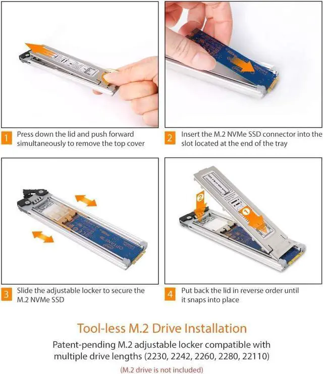 Fits 1x M. 2 PCIe NVMe SSD with all drive length including 2230 (30mm), 2242 (42mm), 2260 (60mm), 2280 (80mm), and 22110 (110mm)