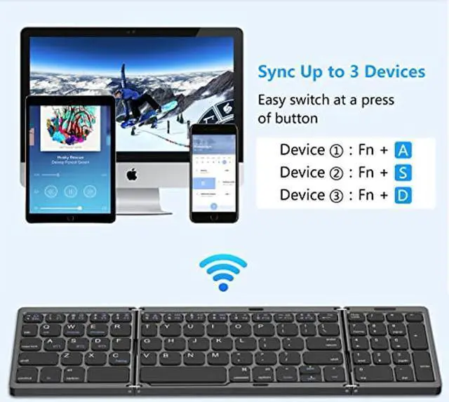 [(Scissor-Switches Quiet Typing)] The quiet and responsive scissor switches low-profile keys offer fluid, laptop-like efficiently typing. A great wireless foldable keyboard that remove over 90% of disruptive sounds and keep the familiar typing feel.