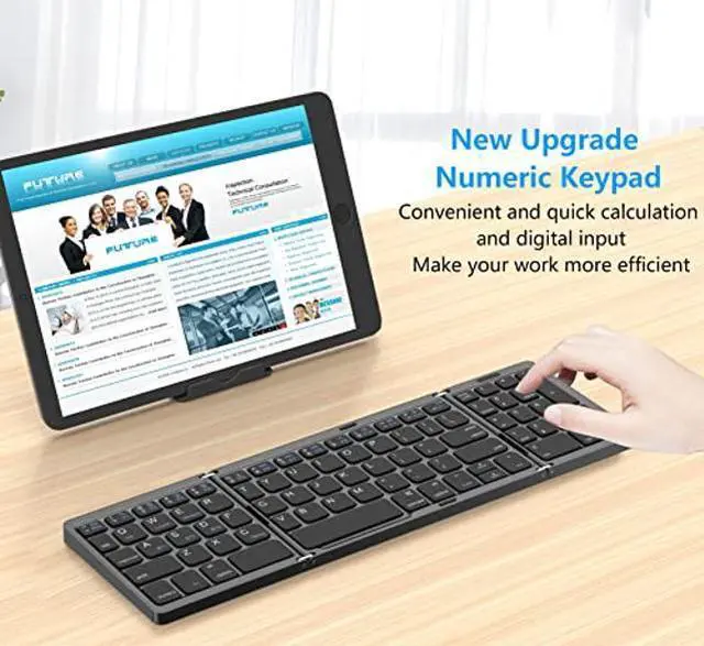 [(Folding Keyboard with Numeric Keypad)] Upgrade equipped with numeric keyboard to facilitate quick calculation and numeric input. Update richer and more practical multimedia shortcut functions to make your work more convenient and efficient! Upgrade Tpye-C fast charge, only 2 hours charging can work 60 hours or standby 560 hours. A full charge is enough for your short business trip or vacation.