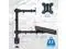The monitor head has VESA 75x75 and VESA 100x100 bolting pattern. VESA pattern is the square bolt hole pattern behind the monitor and measures typically 3 inch by 3 inch or 4 inch by 4 inch. For compatibility with this mount, please check the back of your monitor for the bolt pattern and total weight. Full motion capability of the arms allow the user to move the laptop and monitor closer or farther away, as well as turning it left and right. The arms can be lifted or lowered on the 17.7 inch high pole.
