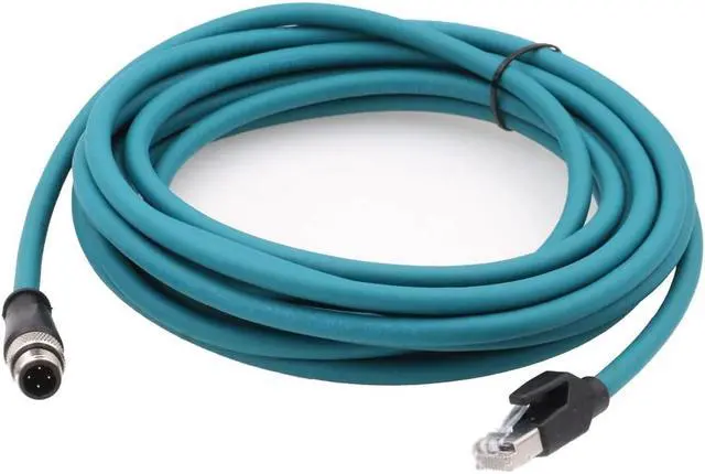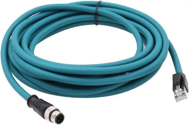 • The industrial ethernet cable is a single foil twisted pair cat5e cable with a black PUR jacket rated at 24 AWG shielded wire. Both the M12 and RJ45 connectors have a molded black TPU strain Relief.