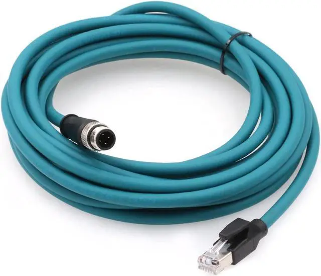 SZRMCC M12 Ethernet Cable D-Code 4 Pin Male to RJ45 Connector High Flex Cat5e Shielded Waterproof Network Cable for Industrial Camera Sensor (3m,Blue)