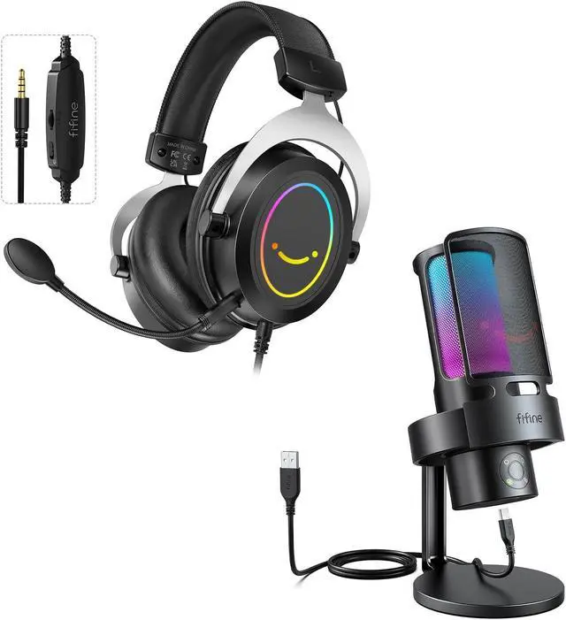 FIFINE Gaming USB Microphone and Over-Ear Headset Wired, PC Computer Mic with 4 Polar Patterns for Podcast Streaming Conference YouTube, Gamer Headset with 3.5 mm Audio Jack, for Xbox(A8Plus+H3)