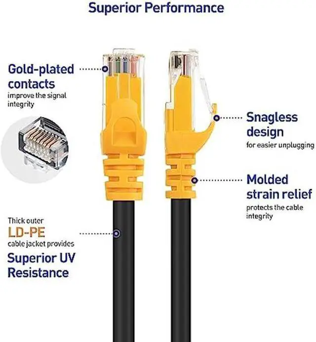 Ethernet patch cable supports Cat6A speeds of up to 10Gbps for unmatched performance across long distances; Heavy duty Ethernet cable is perfect for demanding home and business networks with superior bandwidth capabilities offered with this Cat6a outdoor Ethernet cable