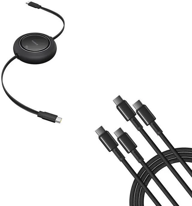 Baseus USB C Cable, PD 100W 6.6 ft Retractable USB C to USB C Fast Charging Cable and Baseus USB C Cable, 2-Pack 3.3 ft 100W 5A Fast Charging USB C to USB C Cable