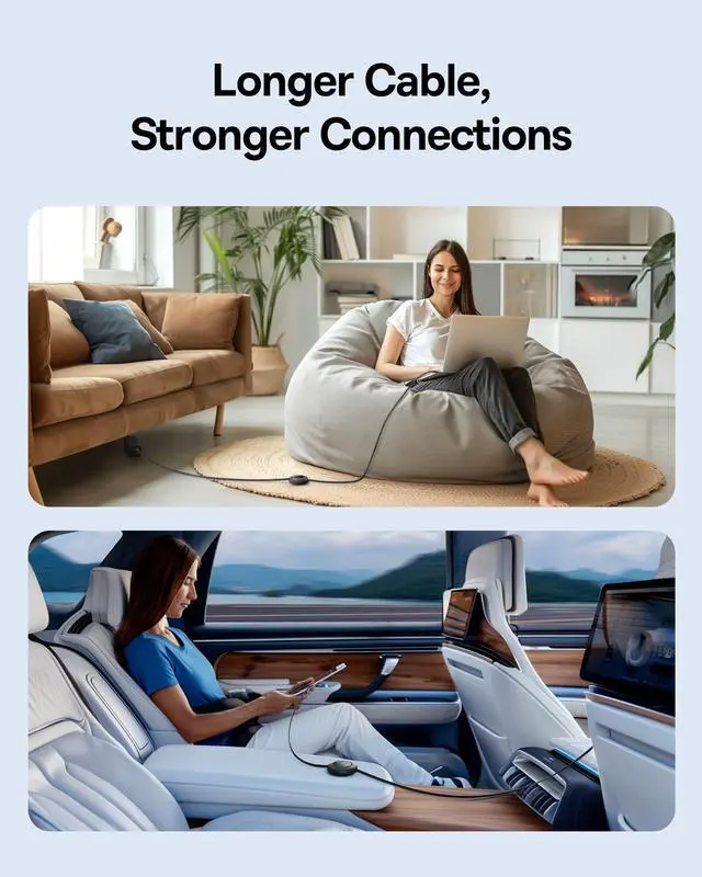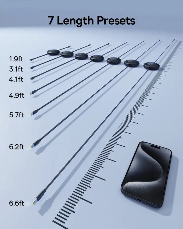 Longer Length Updated: The 6.6ft Retractable USB C Cable Features a 7-Stage Length Preset, Allowing It to Accommodate Various Charging Scenarios and Ensuring Flexibility no Matter the Distance.