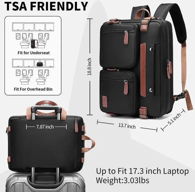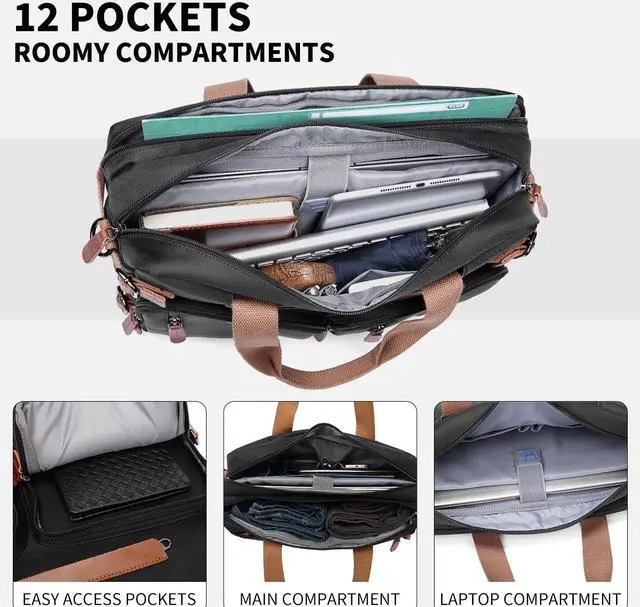 [(3-in-1 Multifunctional Design for Laptop Bag)] Seamlessly switch between different styles to meet your needs. This versatile backpack can be used as a laptop backpack, messenger bag, business backpack, briefcase, laptop bag, university backpack, work bag, crossbody bag, or travel backpack. Perfect for work, commuting, university, airplane travel, walking, and camping. Please note, THIS ITEM IS NOT INTENDED FOR USE BY CHILDREN 12 AND UNDER.