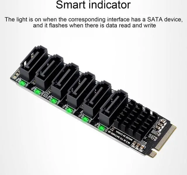 M. 2 to SATA 3.0 Adapter Card, 6Gbps High Speed ASM1166 M. 2 M EKY PCIE 3.0 to SATA Expansion Card Adapter with Smart Indicator for OS X, for Windows, for Linux