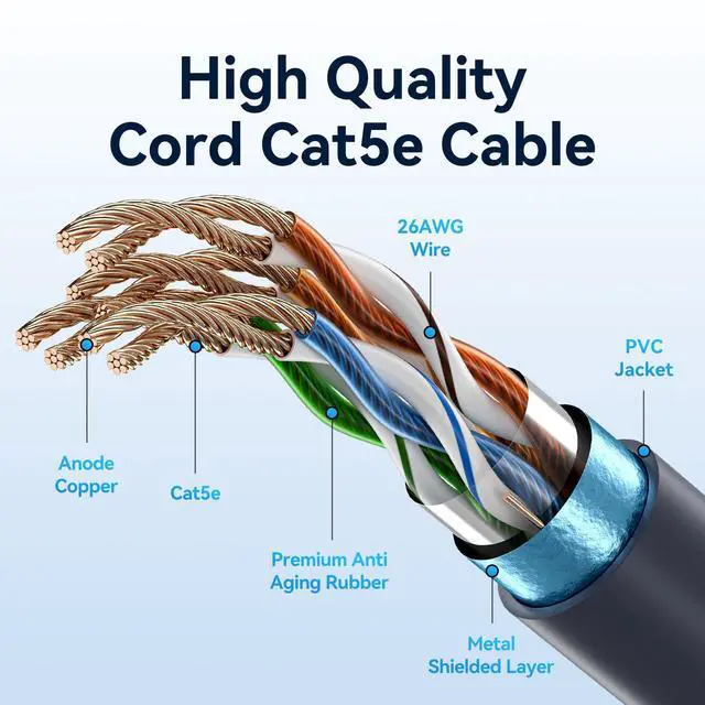 High-Speed & Dual-Shielded Durability Engineered with 26AWG pure copper cores and aluminum foil shielding. Vention starlink replacement cable delivers1Gbps+ speedswith minimal signal loss. Ideal for streaming, gaming,or remote monitoring. Note: The network environment and geographical location may affect network speed.