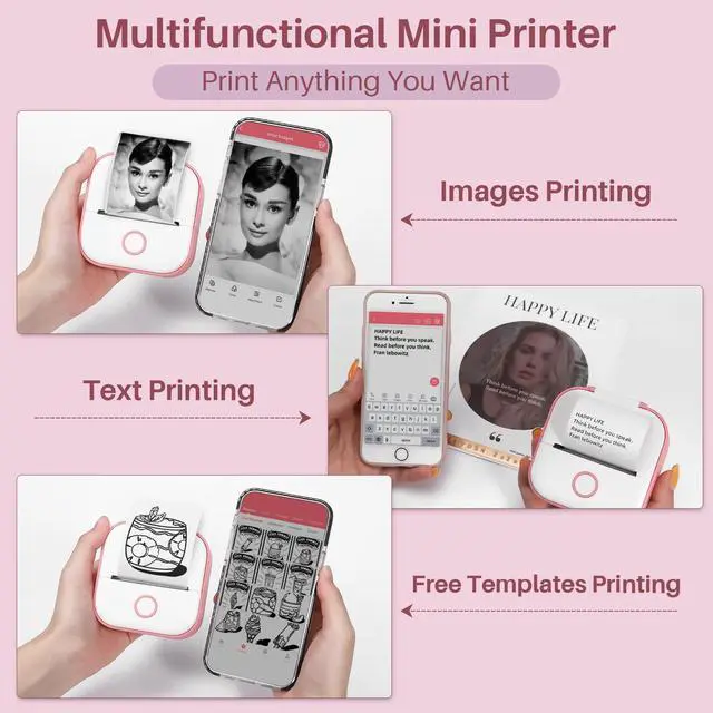 Use Occasions: Memoking T02 203dpi wireless small printer is suitable for printing memos, records, plenty of APP themes, school for students, children, teachers, handwork teaching,