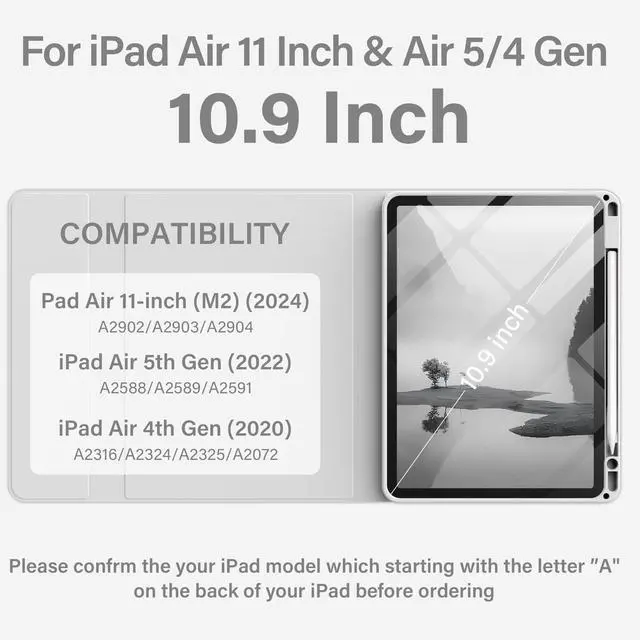 New iPad Air 5th/4th Generation Case with Keyboard- Keyboard Case designed for iPad 10.9 inch Air 2022 5th generation (model: A2588/A2589/A2591) / iPad Air 4th generation 2020 (model: A2072 A2316 A2324 A2325). It is Not compatible with any other models. Please check the model number starting with "A" on the back of your iPad before purchasing.