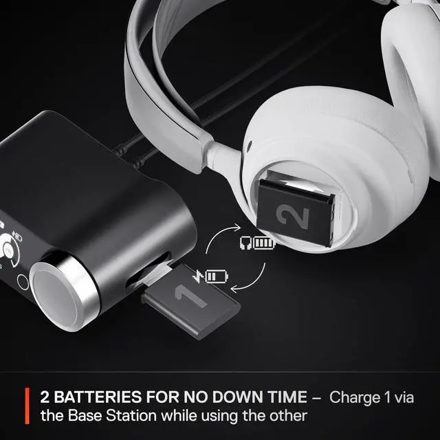 Transport yourself into the soundscape like never before, as the Arctis Nova Pro Wireless brings legendary sound with Pro-Grade Neodymium Magnetic Drivers. A new standard in gaming headsets, enjoy an ultra-detailed soundscape of crystal clear highs, pinpoint mids, and deep bass. Every detail surrounds you as 360° Spatial Audio pulls you into a different world with Sonar Software, in addition to Active Noise Cancellation, which tunes out everything else. Never hit pause with hot-swap dual batteries. Change between gaming platforms with a push of a button, and mix in Bluetooth from your phone for calls and music simultaneously.