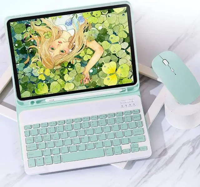 [(Keyboard+Mouse+Flip Case with Pencil Holder)] it is with 3 in1 function, Keyboard and Mouse not only can be used for your iPad but also can used for your computer with bluetooth, the Folio Cover can protect your iPad full body well anytime.In addition,this flip smart cover with a slot for holding your pencil (PEN NOT INCLUDED)