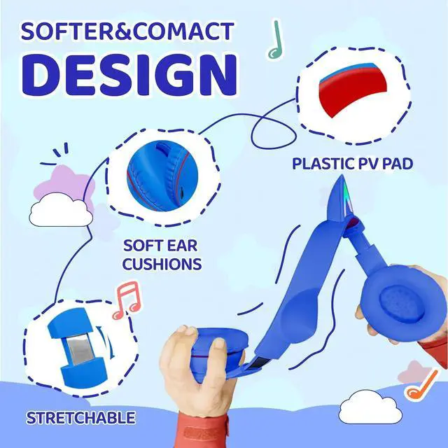 Comfortable and Collapsible Design: The adjustable headband gives the headphones some impressive flexibility, so they can adapt to the shape of your head for a perfect fit.Soft ear cushions and long-wearing comfortable without stress, fit for growing teens even adults. It's great travel partner, let you ones enjoy the journey without bothering you.