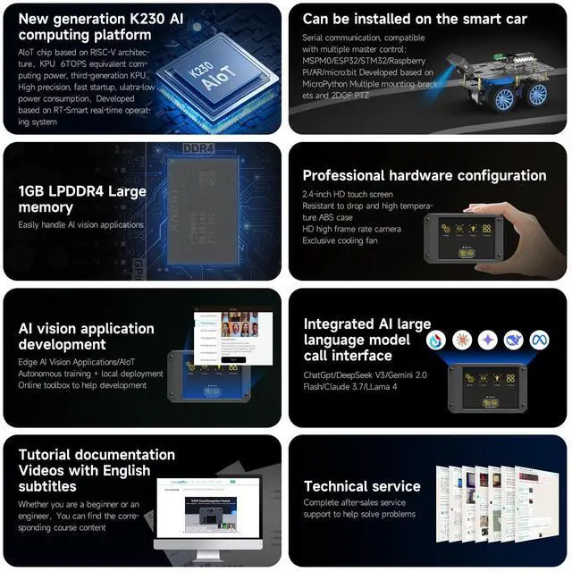 Flagship performance, extremely fast responseEquipped with a 1.6GHz main frequency chip, the KPU computing power is 13.7 times that of the K210 visual module, and the CPU computing power is 8.5 times that of the K210. It supports real-time operation of complex AI models and can easily cope with high-load tasks such as image recognition and voice processing.