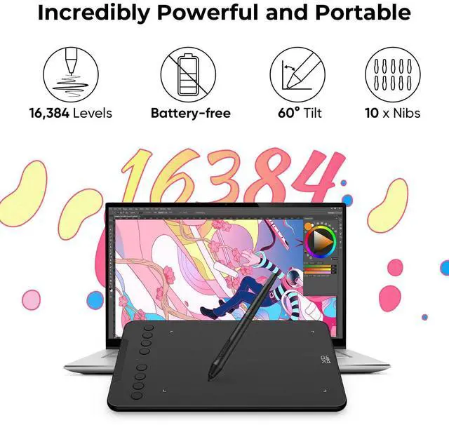 Word-first 16K Pressure Levels: The upgraded stylus offers 16,384 levels of pressure sensitivity for precise control, ideal for detailed artwork. Enhanced nibs ensure longer reliability for aspiring illustrators. The battery-free pen allows for uninterrupted creativity, perfect for students and casual users. With 60° tilt recognition, beginner can easily achieve varied line thicknesses and shading effects