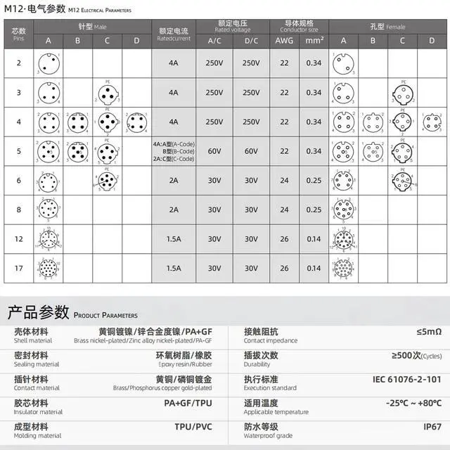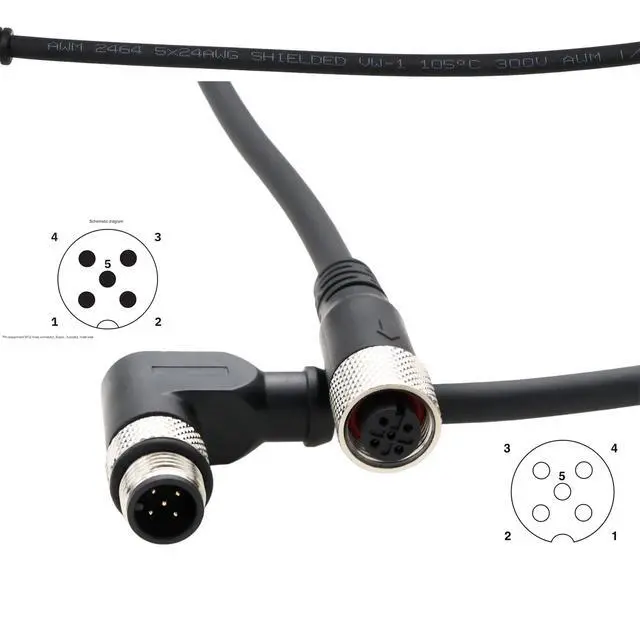 Widely used in industrial controls automation systems for data and power electrical connections. Works with PLCs (for Omron Siemens SICK Baumer Cognex), actuators, sensors, robots, marine boat, switches, I/O link, and major protocols (CAN bus, NMEA2000 marine electronics device, DeviceNet, Profibus, IO Link, PROFINET, EtherCAT, CANopen). Ideal for factory automation, transportation, and control systems