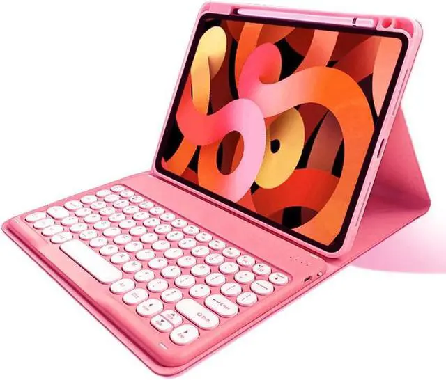 [(Multiple Viewing Angles & Removeable Magnetic Color Keyboard)] Bulit-in Rechargeable Keyboard . Cute round key, The magnetic wireless keyboard is removable .You can connect this Bluetooth keyboard to any
